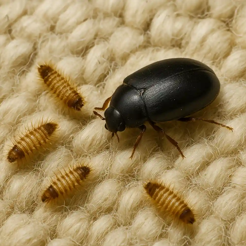 لاروهای سوسک فرش عاشق محیط های تاریک ، گرم و کم تحرک هستند . پس جاهایی مثل زیر مبل ، پشت پرده ، یا فرش هایی که مدت ها تکان نخورده اند ، می توانند تبدیل به محل تخم گذاری شوند . اگر کسی این چرخه را نشناسد و قطعش نکند ، تعداد سوسک ها زیاد می شود و آسیب بالا می رود . شناخت این رفتارها قدم اول برای کنترل این آفت است .