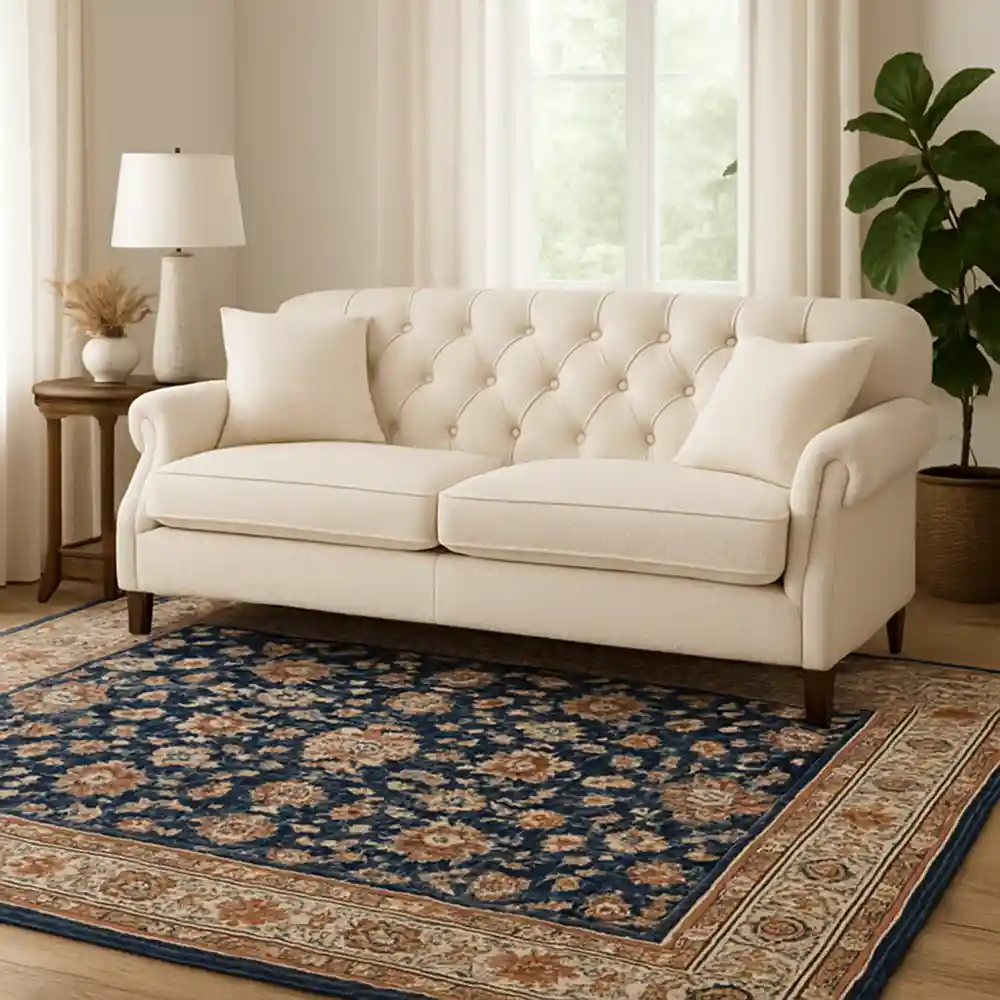 ترکیب فرش سرمه ای با مبل کرم یه انتخاب شاهانه ست ! اگه به دکوراسیون کلاسیک علاقه دارید ، این ترکیب دقیقاً همون چیزیه که دنبالشید .