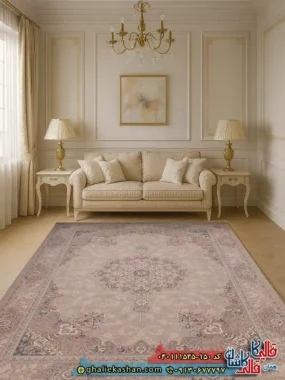فرش طلاکوب ماشینی کاشان 1200 شانه طرح آریانا کرم چرک گل برجسته فرش جدید در دکوراسیون قالی کاشان