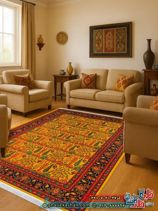 رنگ طلایی این فرش ، آن را به گزینه ای مناسب برای دکوراسیون های کلاسیک و سنتی تبدیل کرده است . فرش افشان به دلیل نداشتن ترنج مرکزی ، فضا را بازتر نشان می دهد و همین ویژگی در پذیرایی های بزرگ جلوه بیشتری دارد . این فرش در کنار مبلمان چوبی ، رنگ های گرم و چیدمان ایرانی ، هماهنگی بسیار خوبی ایجاد می کند . اگر دوست دارید فضای خانه شما حس اصالت فرش کاشان را داشته باشد و در عین حال شیک و دلنشین به نظر برسد ، این مدل می تواند انتخابی کاملاً مناسب باشد .