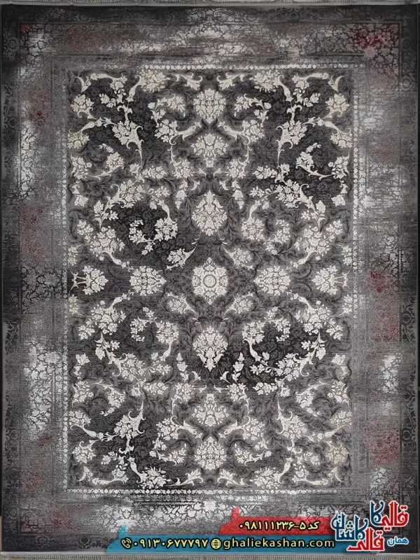 نقد و بررسی فرش طلاکوب وینتیج 1200 شانه طرح افشان نورا رنگ طوسی دودی قرمز گل برجسته کاشان
