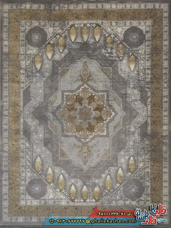 قالی کاشان | فرش کاشان فرش 1200 شانه کاشان فرش طلاکوب وینتیج 1200 شانه طرح شازده رنگ طوسی نقره ای گل برجسته کاشان