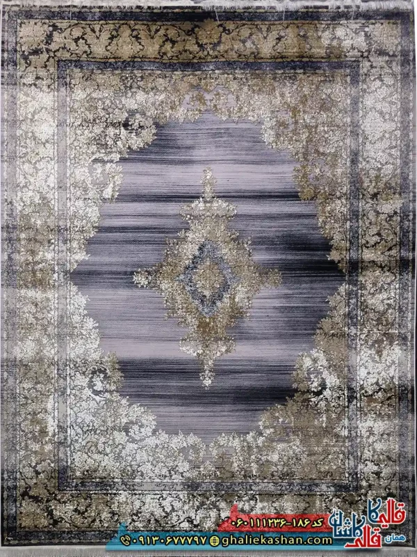 قالی کاشان | فرش کاشان فرش 1200 شانه کاشان فرش طلاکوب وینتیج 1200 شانه طرح هدیه رنگ طوسی یاسی گل برجسته کاشان