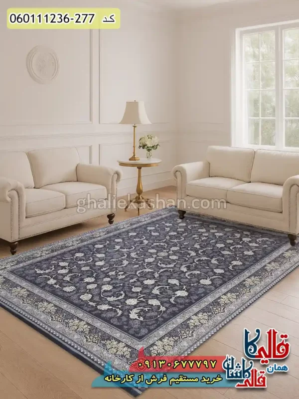 1. فرش طلاکوب 1200 شانه طرح افشان پریماه رنگ دلفینی گل برجسته کاشان اصلی