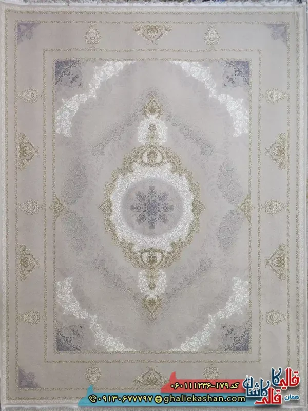 2. فرش طلاکوب 1200 شانه طرح برکه رنگ کرم صدفی گل برجسته کاشان حاشیه