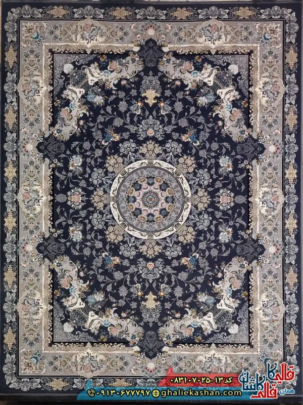 مشخصات فرش طلاکوب 700 شانه طرح رزا رنگ طوسی دودی کاشان