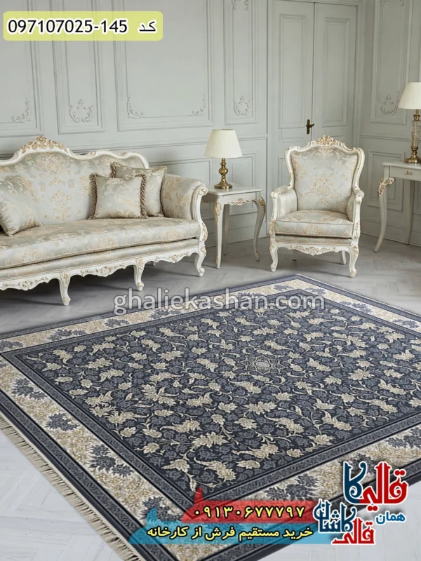این فرش در دسته فرش کلاسیک قرار می گیرد . همانطور که می بینید رنگ دلفینی و گل های طلاکوب آن، ظاهر بسیار باوقاری به آن داده است . نکته خوب آن این است که چه مبل روشن داشته باشید چه تیره، به راحتی با آن ست می شود . برای پذیرایی های لوکس یا حتی خانه هایی با دکور مدرن نیز انتخاب درستی است . خلاصه، اگر به دنبال فرشی هستید که هم اصالت قالی کاشان را داشته باشد و هم به سبک دکور امروزی بیاید، این مدل یک انتخاب بی نقص است .