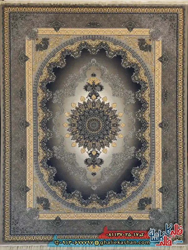 فرش طلاکوب 700 شانه طرح کارن رنگ طوسی فیلی کاشان