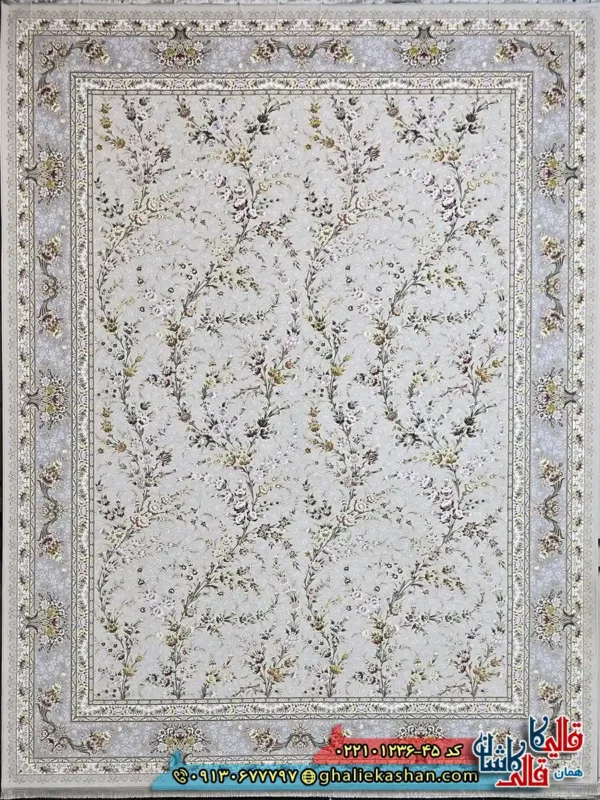 قالی کاشان | فرش کاشان فرش 1200 شانه کاشان فرش لایت 1200 شانه طرح افشان آیکان رنگ طوسی سیلور کاشان