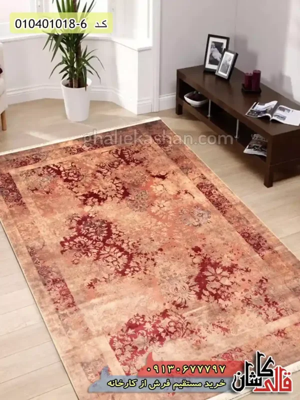 قیمت خرید فرش قالی کاشان فروش فرش ماشینی وینتیج 1000 شانه طرح افشان بدرام زمینه قرمز کاشان نزدیک 4