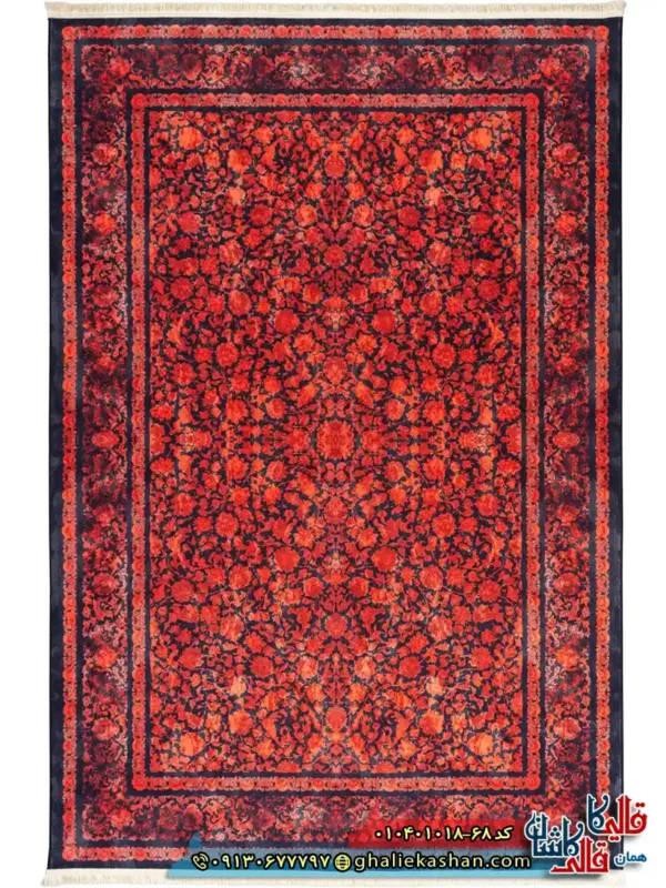 این فرش از آن مدل ‌هایی است که زمانی که نگاهش می ‌کنید ، رد ترکیب رنگ قرمزِ پرانرژی و مشکیِ سنگین سریع در چشم می ‌زند . طرح افشان شاه گل که با ریزنقش ‌های زیاد کل سطح فرش را پر کرده ، یک هماهنگی اصیل و سنتی ساخته که چشم را خسته نمی ‌کند و هر بار نگاهش کنید ، یک جزئیات تازه پیدا می ‌کنید . در عکس فرش نیز کاملاً معلوم است که گل ‌های شاه ‌عباسی بسیار ریز و پر تعداد کار شده و همین باعث شده سطح فرش کاملاً یکدست و شلوغ دیده شود ؛ چیزی که در فضاهای کم ‌نور یا پذیرایی ‌های بزرگ ، حسابی جلوه می ‌کند و فضا را گرم ‌تر نشان می ‌دهد . حتی در چیدمان ‌های امروزی نیز این مدل به دلیل ترکیب رنگ خاصش یک نقطه کانونی قوی می ‌سازد .