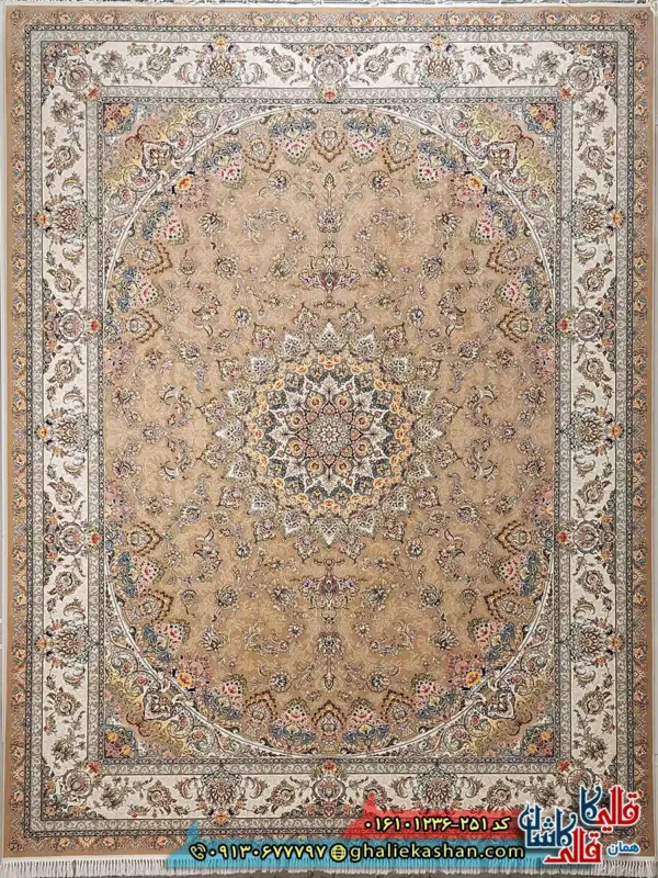 مشخصات فرش کلاسیک 1200 شانه طرح شهریار رنگ بژ کاشان