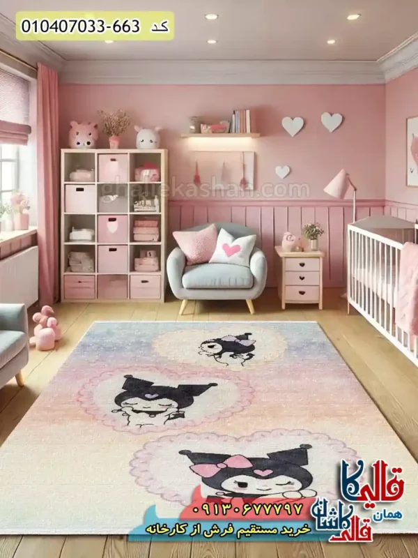 فرش کودک دخترانه 700 شانه طرح کرومی رنگ صورتی کاشان
