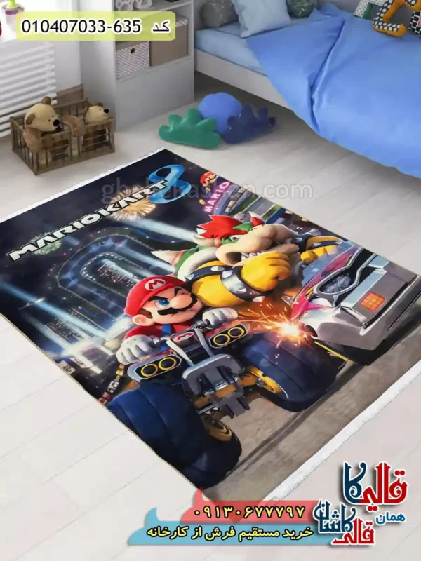 فرش کودک پسرانه 700 شانه طرح ماریو کارت رنگ زغالی کاشان