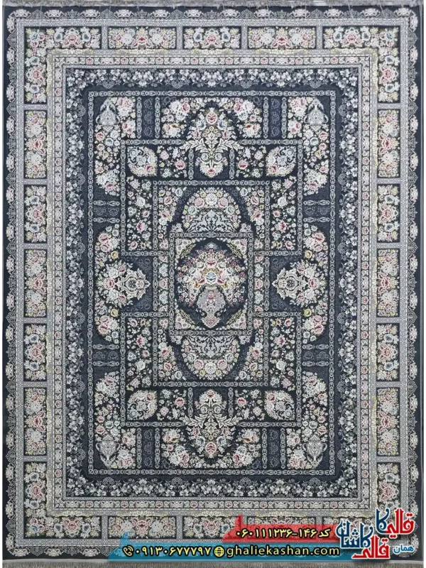 قالی کاشان | فرش کاشان فرش 1200 شانه کاشان فرش 1200 شانه خشتی طرح باران رنگ طوسی دودی گل برجسته کاشان