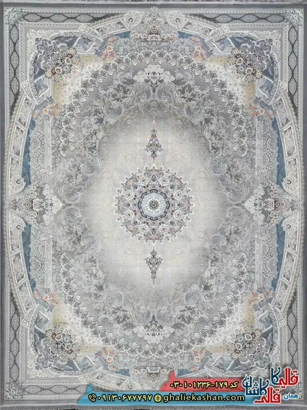 مشخصات فرش 1200 شانه طرح آرمیتا رنگ طوسی کاشان