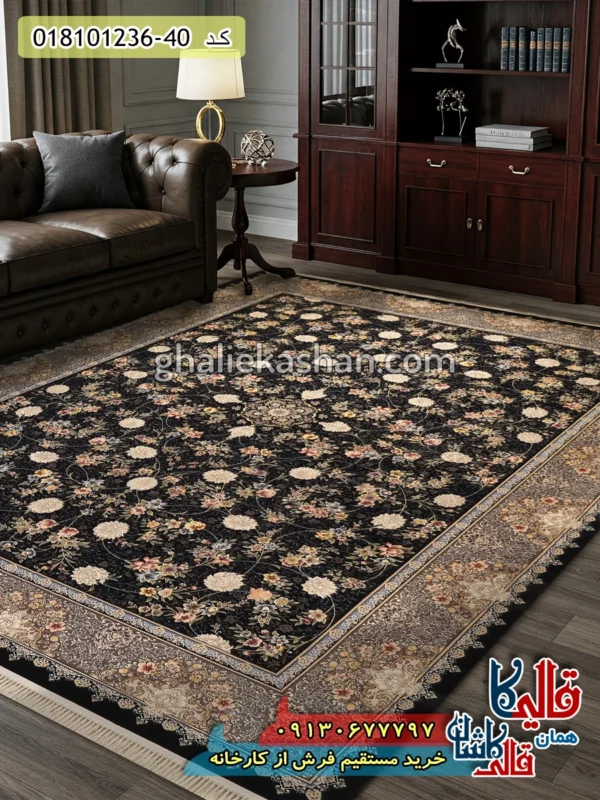 فرش 1200 شانه طرح افشان پرنیان زمینه سرمه ای کاشان