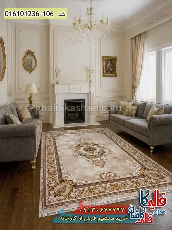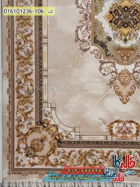فرش 1200 شانه طرح رزتا رنگ کرم کاشان