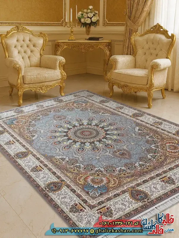 1. فرش 1200 شانه طرح رویا رنگ نقره ای کاشان اصلی