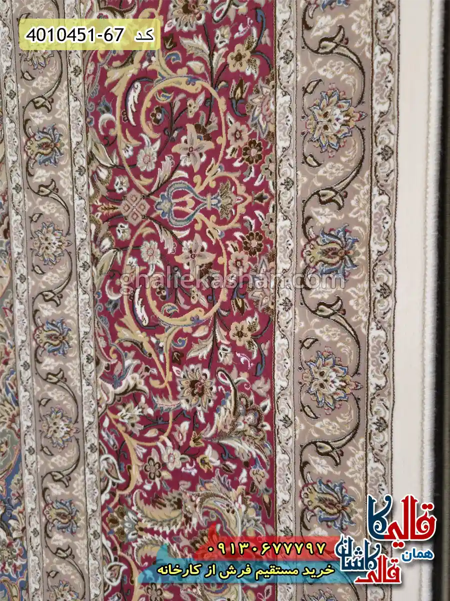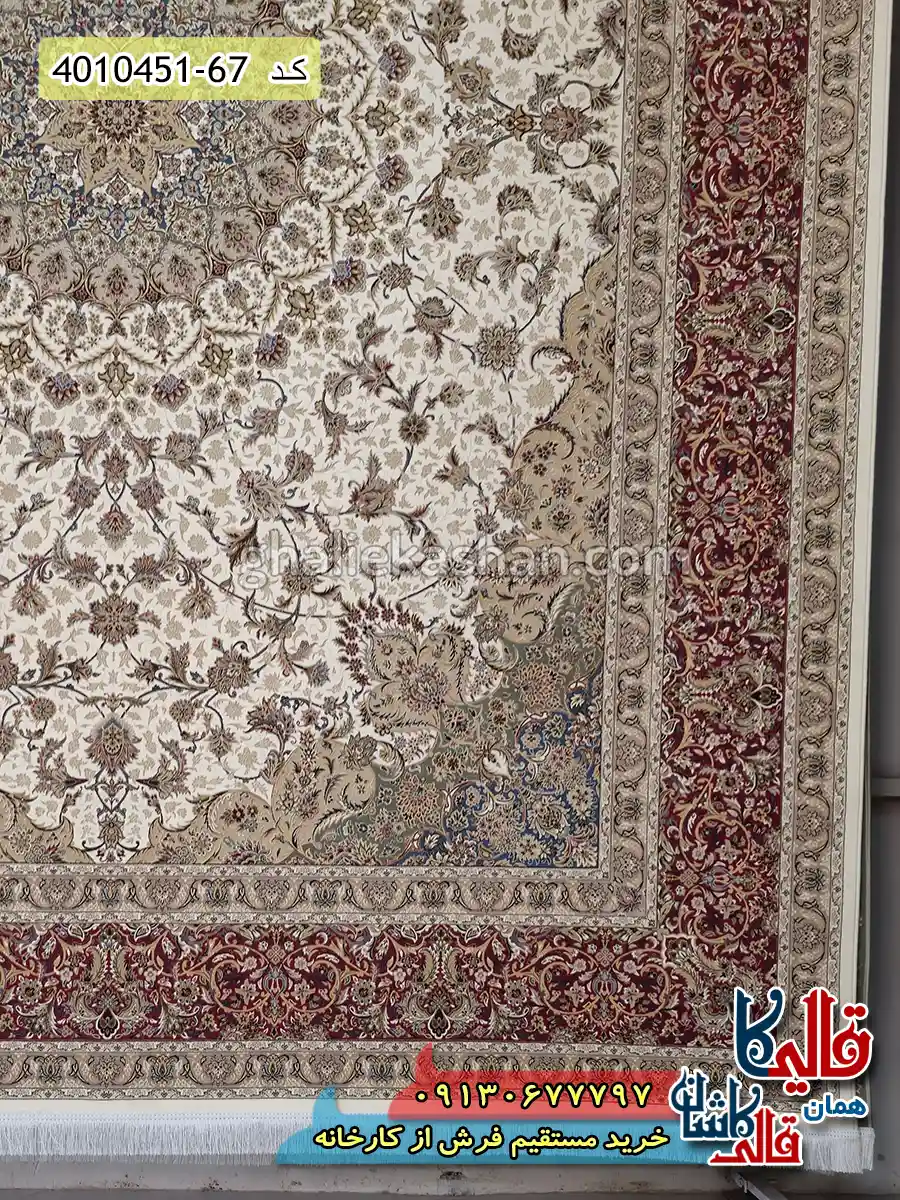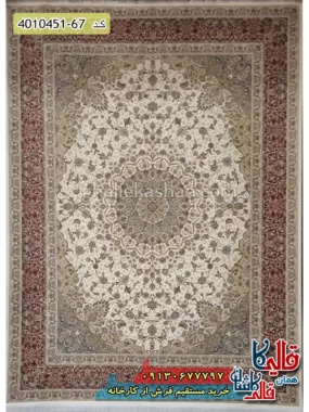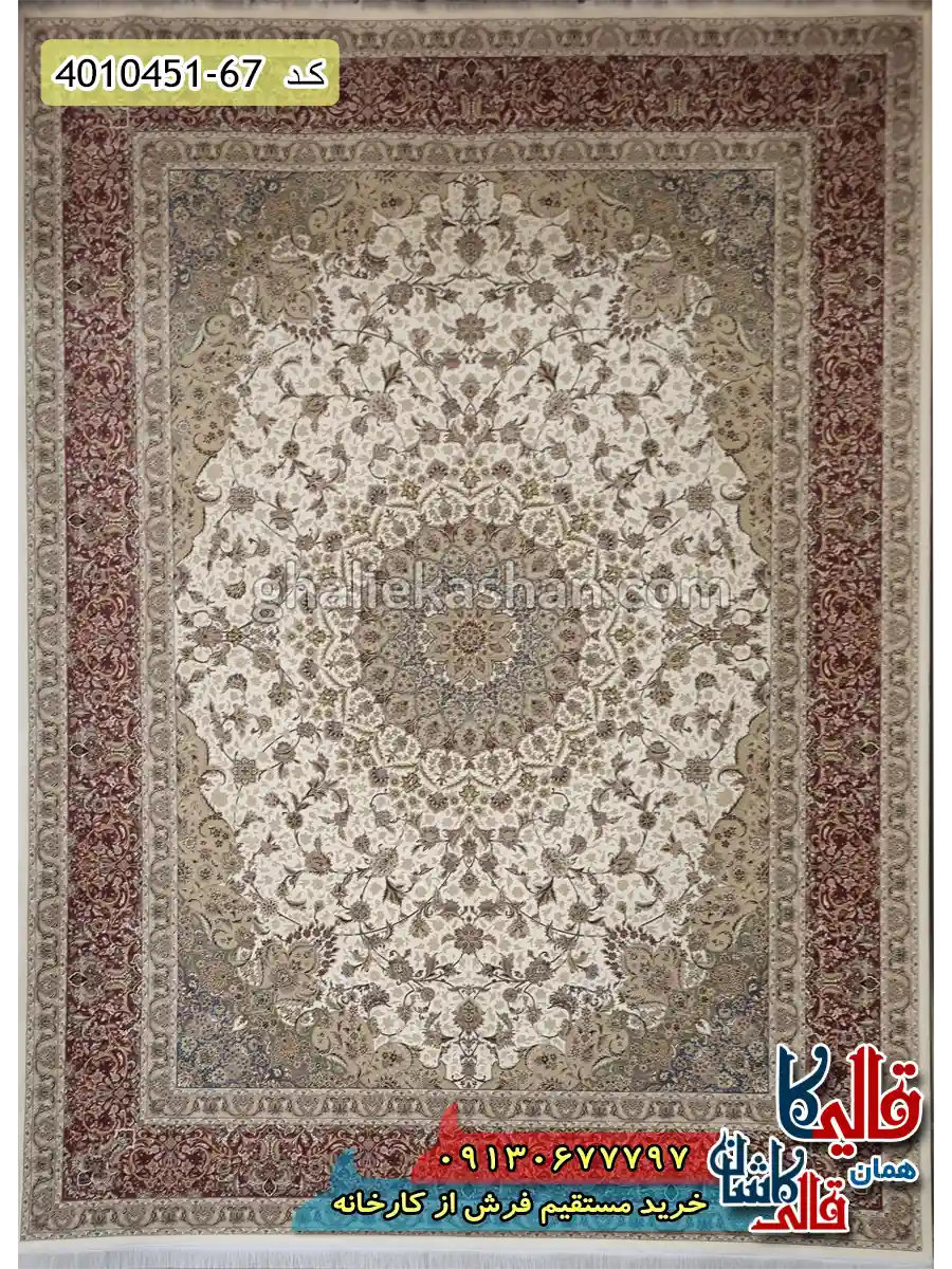 • قیمت خرید فرش قالی کاشان فروش فرش ماشینی 1000 شانه طرح اصفهان زمینه کرم کاشان اصلی
