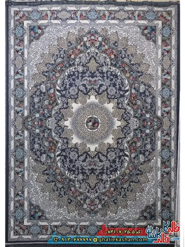 مشخصات فرش 700 شانه طرح آروانا رنگ طوسی دودی کاشان