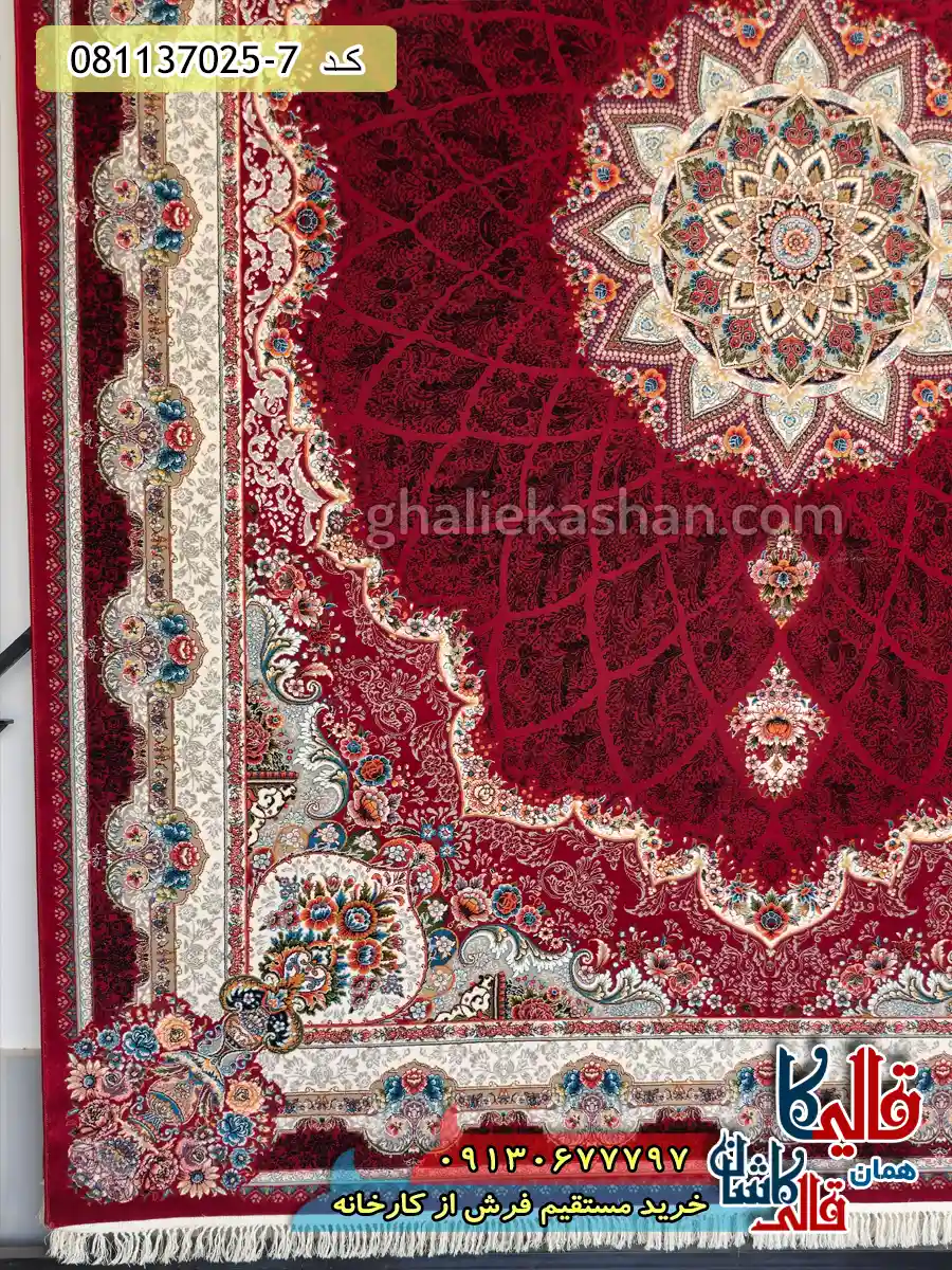 3. فرش 700 شانه طرح آیسان رنگ قرمز لاکی کاشان نزدیک
