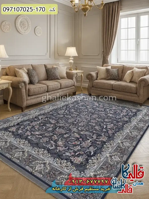 1. فرش 700 شانه طرح افشان آترین رنگ طوسی متالیک کاشان اصلی