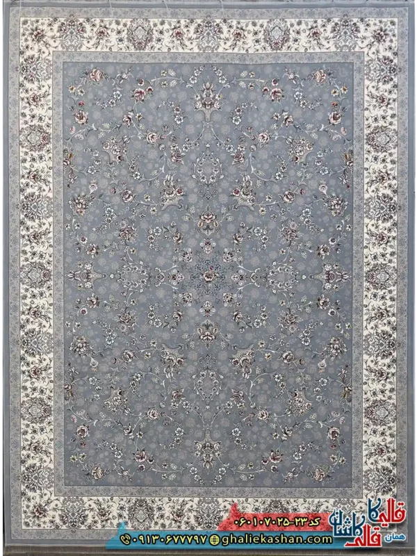 قالی کاشان | فرش کاشان فرش 700 شانه کاشان فرش 700 شانه طرح افشان آیناز رنگ طوسی نقره ای کاشان