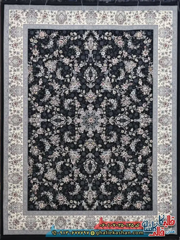 مشخصات فرش 700 شانه طرح افشان آیناز زمینه سرمه ای کاشان