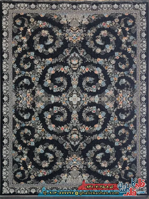 قالی کاشان | فرش کاشان فرش 700 شانه کاشان فرش 700 شانه طرح افشان ترنم رنگ سرمه ای کاشان