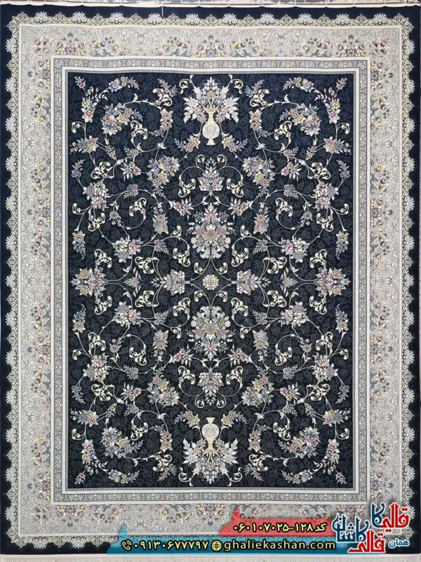 3. فرش 700 شانه طرح افشان نگارین رنگ سرمه ای کاشان نزدیک