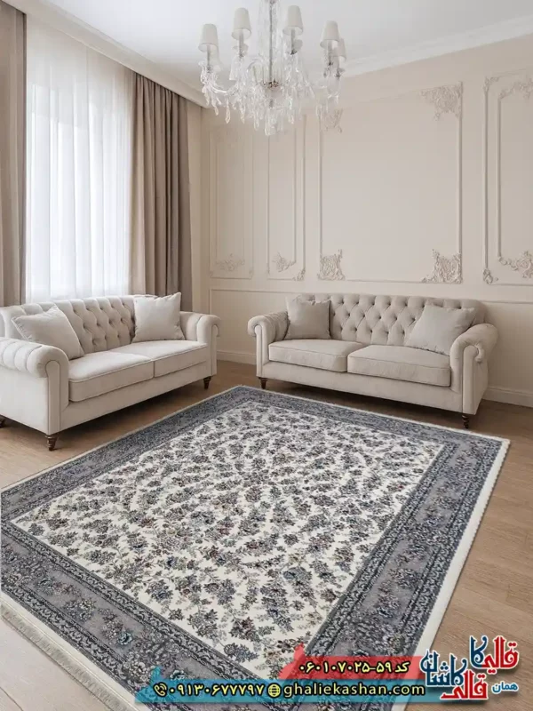 1. فرش 700 شانه طرح افشان ژینوس رنگ کرم کاشان اصلی