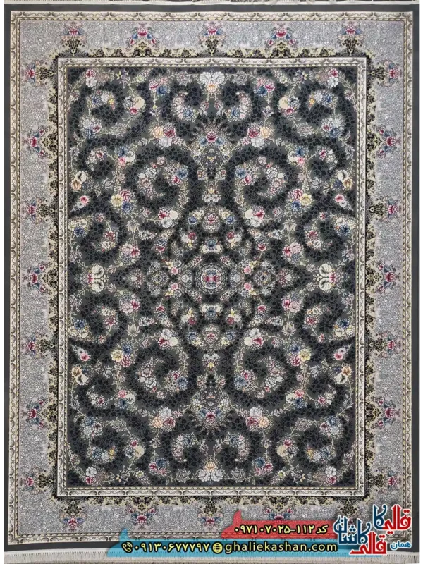 مشخصات فرش 700 شانه طرح افشان گندم رنگ طوسی دودی کاشان