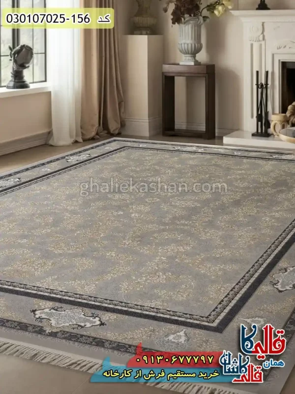 فرش 700 شانه طرح فروزان زمینه سیلور کاشان